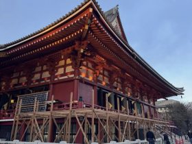 今日の新門 浅草寺節分会の準備が整いました。明日は浅草寺年男ならびに浅草観光連盟…