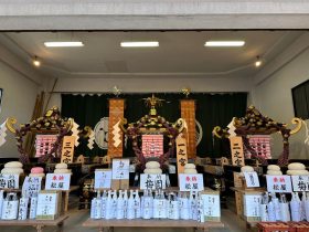 New Year decorations: Shinto altar decorations, offerings, kadomatsu (pine deco…